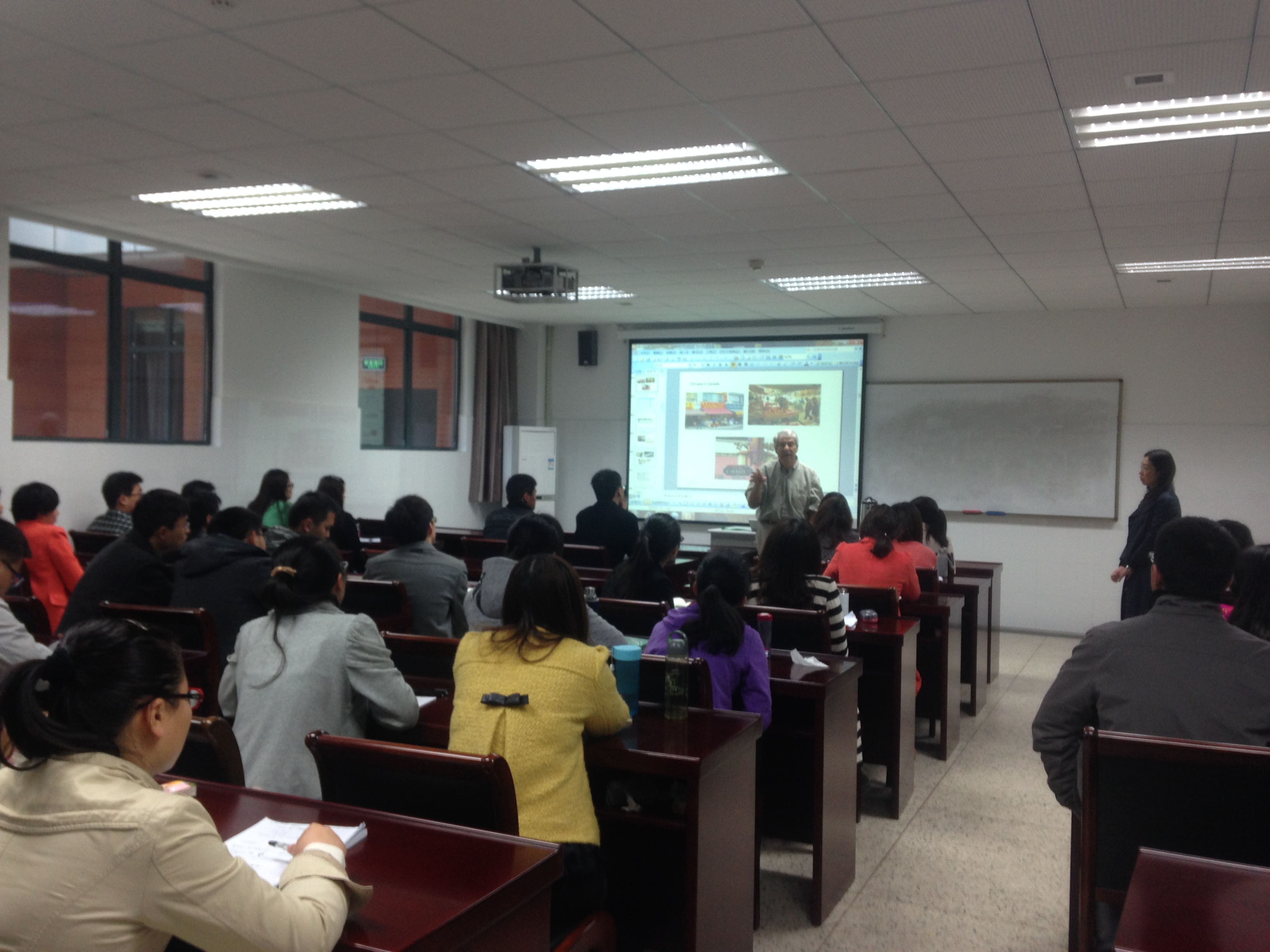 讲座在热烈而活泼的气氛中开始,Greg Blank教授首先与大家分享了一些各国的特色食品,以此来引导大家,使大家对不同国家的食品安全问题有了深刻的印象。后面还讲了加拿大的食品安全体系,与大家探讨了加拿大的食品安全体系于我国的不同。Greg Blank教授轻松而幽默的大家讲述他对食品安全问题的看法与见解。在随后的提问解答环节,同学们踊跃提问,Greg Blank教授耐心幽默的解答,学术氛围浓厚。Greg Blank教授的幽默与博学感染着现场的每一个人。最后讲座在热烈的掌声中结束。