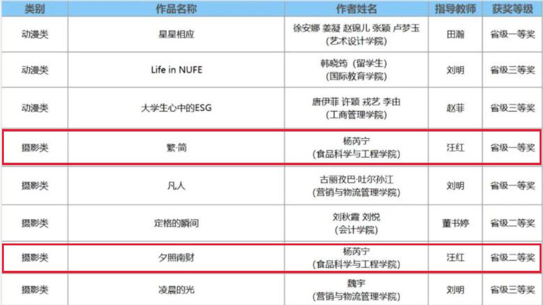 杨芮宁同学的作品(指导老师:汪红)获一等奖和二等奖各1项。