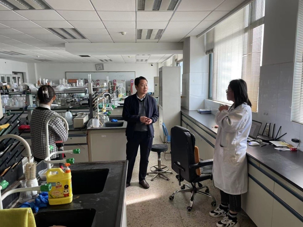 四楼江苏省粮油品质控制及深加工技术重点实验室、食品与粮食工程江苏省实验教学与实践教育中心,以及各科研团队实验室。细致查看了各实验室台账、询问值班实验员和现场研究生,针对整改意见现场检查了实验室问题整改落实情况。