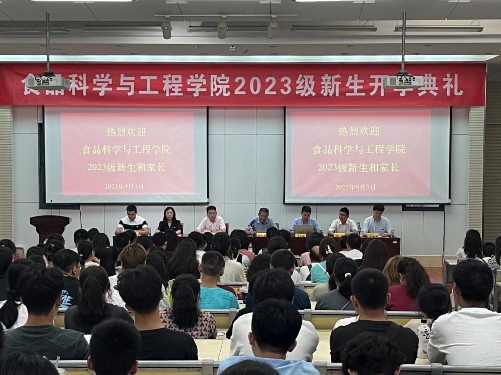 在工科楼二楼阶梯教室隆重举行2023级新生开学典礼。全体院领导、教师代表、学工系统老师和2023级新生及家长参加了开学典礼,开学典礼由院学工办主任石晶晶主持。