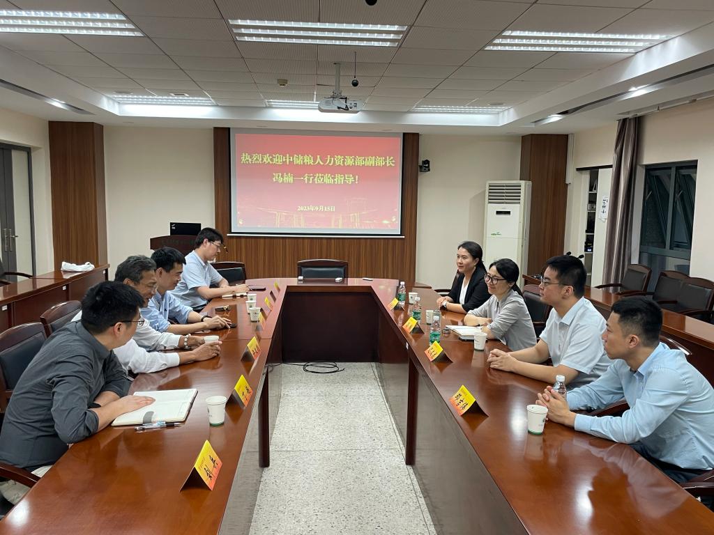 2023年9月15日下午,中国储备粮管理集团有限公司人力资源部副部长冯楠、人力资源部干部监督与教育处副处长迟文龙、中储粮培训中心技能认定处副处长邓吉伟 、中储粮江苏分公司人事处副处长刘晓翠一行来百乐门娱乐