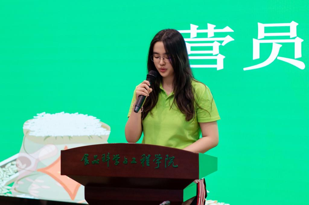 优秀营员代表吴思源深情回顾了夏令营期间的点点滴滴,分享了自己的成长与收获,并表达了将所学知识与技能应用于未来学习、工作乃至生活的坚定决心。她表示,将不负韶华,勇于担当,成为守护中国粮仓的忠诚卫士,用青春和汗水书写属于自己的辉煌篇章。
