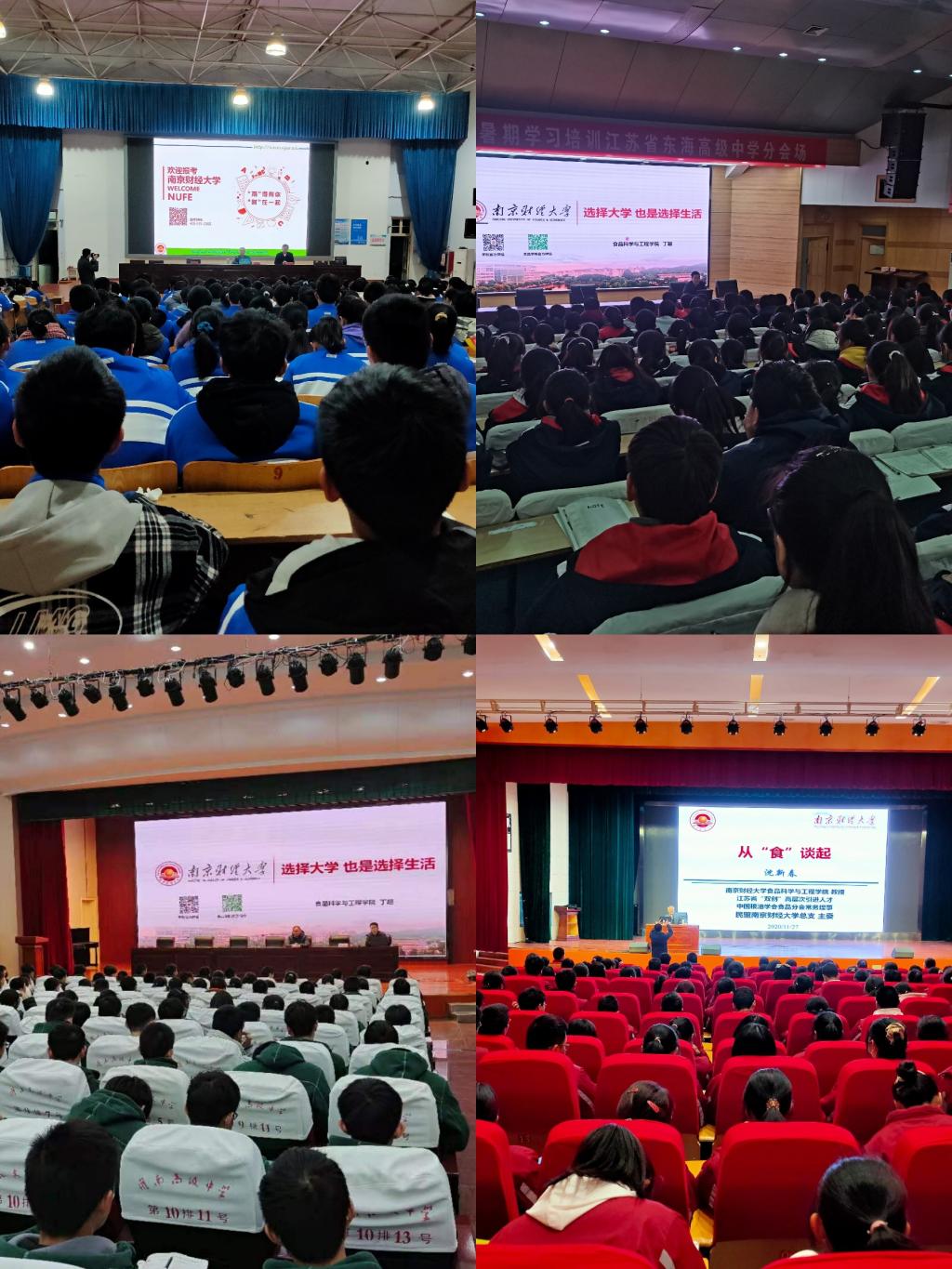 教授沈新春、学工办主任石晶晶赴赣榆高级中学和海州高级中学开展“从‘食'谈起”科普讲座,受到中学师生的热烈欢迎。在讲座中,沈教授以“初心和梦想”为切入点,向同学们讲述了他的成长经历以及他作为一名食工人的初心和梦想。在两场讲座过程中,沈新春教授不断与同学们互动,向同学们展示了食品科学与现代科技的融合,激发了同学们对食品学科的兴趣。每场讲座最后,沈新春教授都向同学们介绍了百乐门娱乐