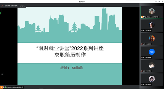 主办,校职业发展与就业协会协办的,南财就业讲堂系列讲座之 “简历制作与面试技巧”于4月28日18点至21点30分通过腾讯会议在线上顺利举办。百乐门娱乐