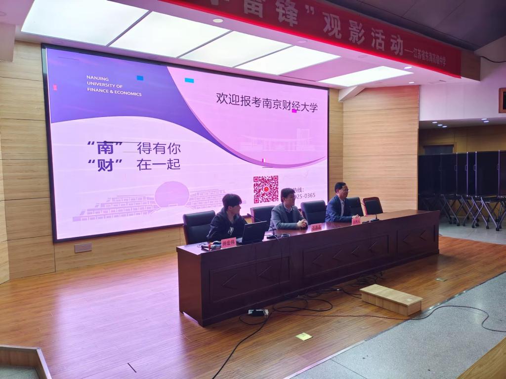学工办主任石晶晶、分团委负责老师仲宏伟先后与两校师生深入交流座谈。石晶晶老师在灌南高级中学主讲了题为“选择大学也是选择生活”的精彩讲座,仲宏伟老师在东海高级中学主讲了提为“南京财经大百乐门娱乐
