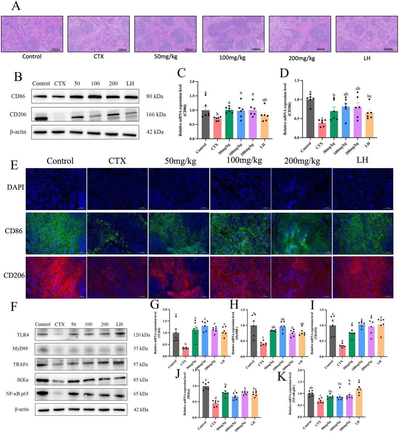 图2. KSPLY对免疫抑制小鼠的免疫调节机制探究