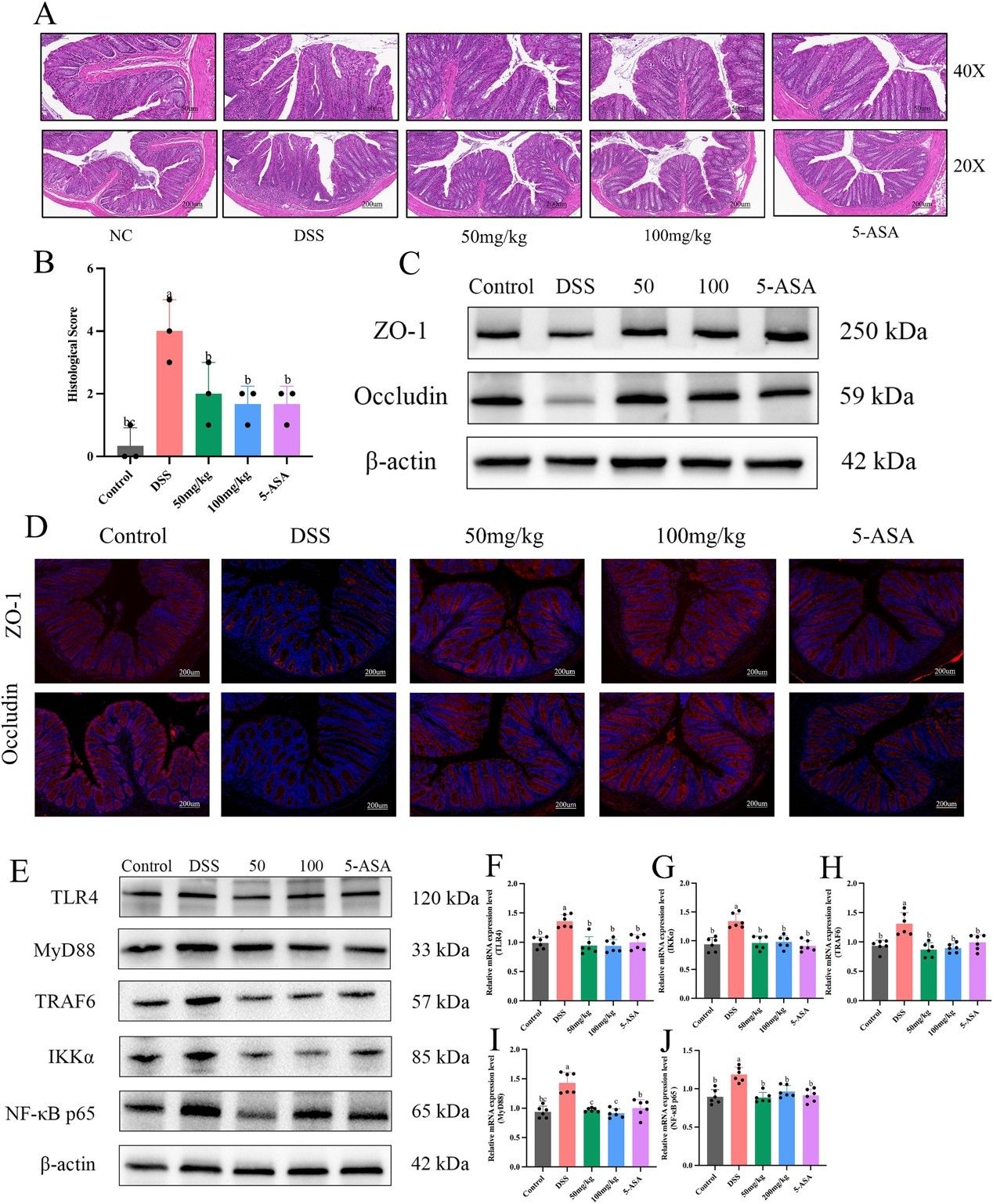 图3. KSPLY对DSS诱导的溃疡性结肠炎的保护作用