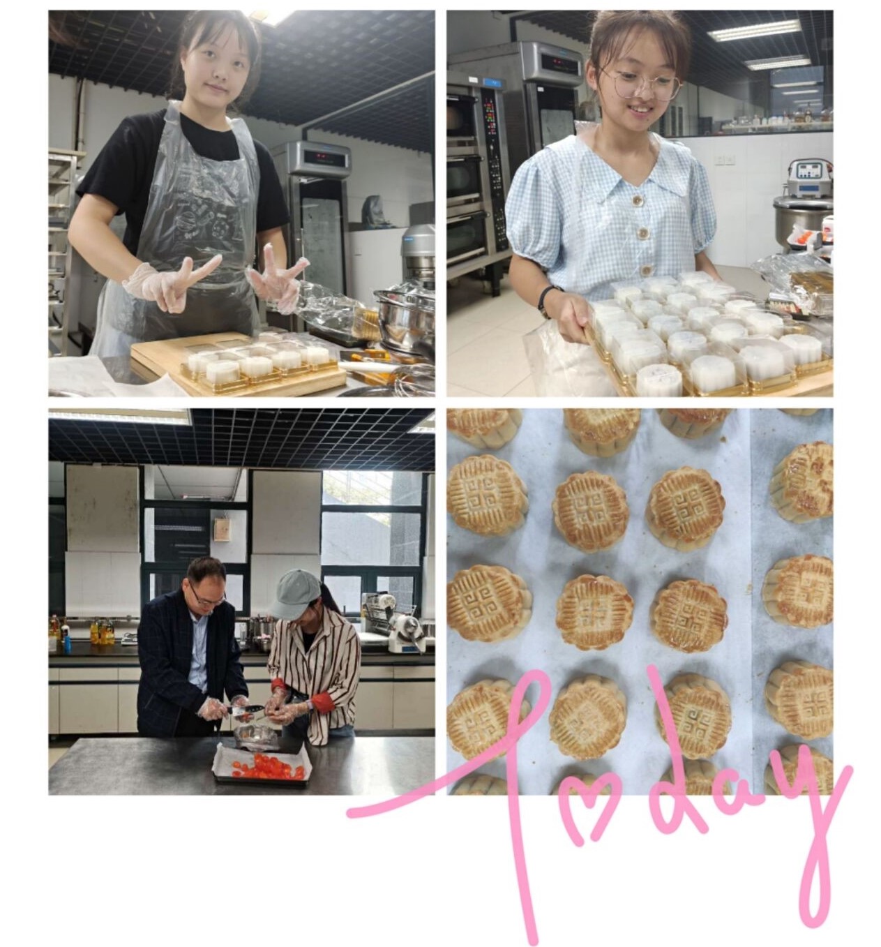 刘志云老师和部分省外打算留校的新生同学一起在工科楼烘焙实验室做月饼庆中秋。烘焙实验室内欢声不断,气氛特别活跃。大家亲自动手称原料、擀面皮、团馅料、包月饼,最后一起品尝了热腾腾出炉的美味月饼。大家品味了美食,享受了亲自动手制作的乐趣,欢庆了佳节,整个过程充满欢声笑语,增进了师生之间的了解和情谊。食工2001班班主任苏安祥、食工2002班班主任丁俭、食安2001班班主任梁富强、食安2002班班主任孙静、粮工2001班班主任陈二虎、应化2001班班主任王康旭分别走进宿舍,与班级同学提前同赏明月,共话家常。