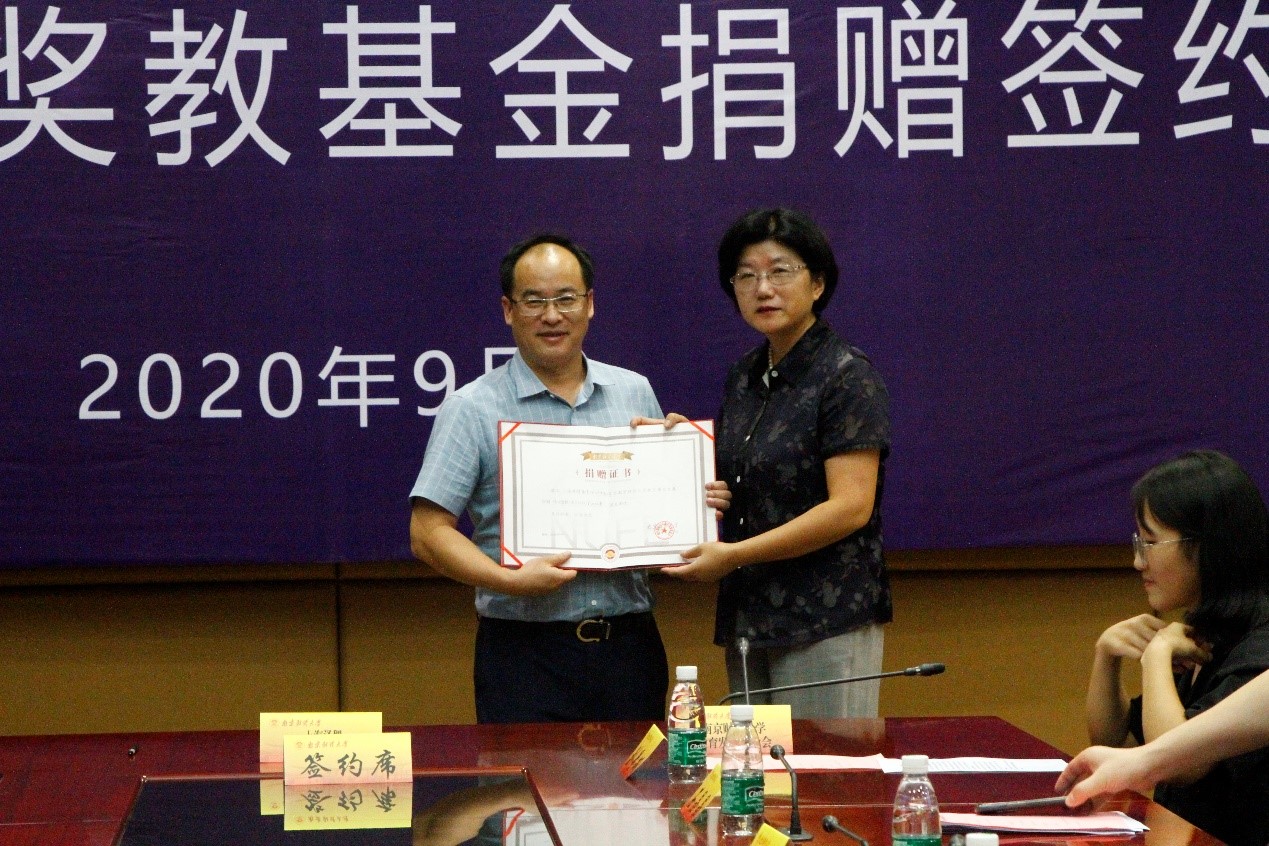 邱伟芬副校长向蒋望董事长颁发捐赠证书