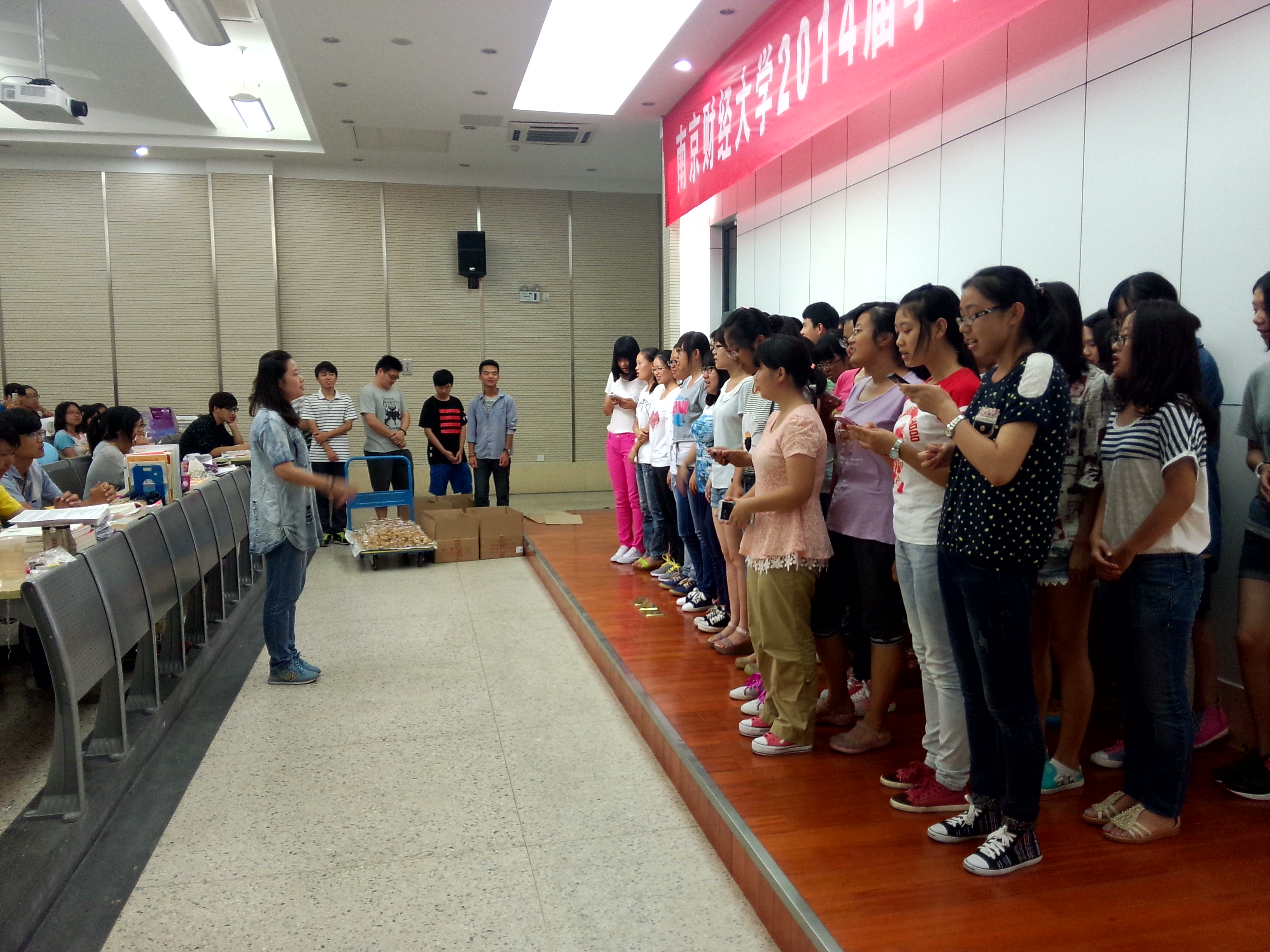 联谊会上,新生们按照班级分别上台合唱军歌,《军中绿花》、《打靶归来》、《团结就是力量》,一首首耳熟能详的歌曲点燃了大家的热情,整齐响亮的歌声也唱出了新生们的活力,军训带来的辛苦顿时一扫而空。歌曲唱完后,由学生会的同学们为新生们分发月饼。今年中秋,不仅有百乐门娱乐