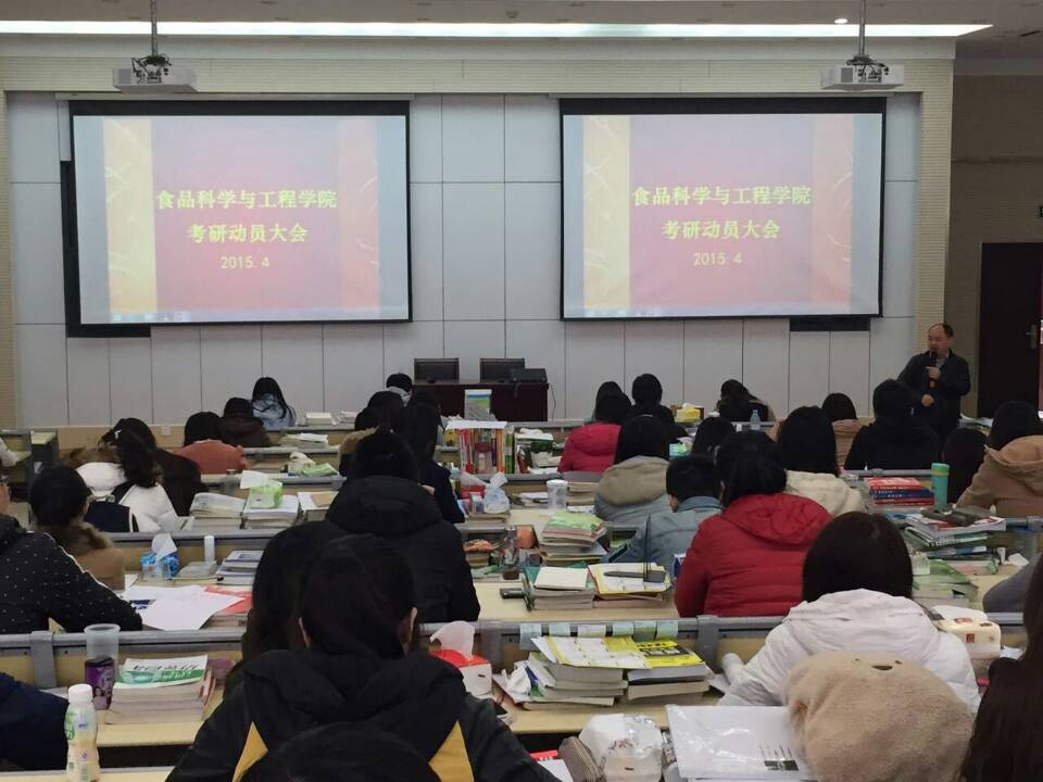 仙林校区食品科学与工程楼考研自习教室顺利开展,院长胡秋辉,团总支书记周进进及一百多名2016考研同学们参与了此次动员大会。
