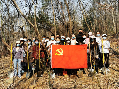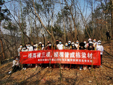 研究生党支部组织党员志愿者们在栖霞山九龙坡景区,开展以“一棵两棵三棵,棵棵皆成栋梁材”为主题的植树节志愿服务活动。