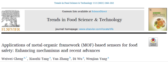汤晓智教授课题组与河北食品检验研究院张岩研究员联合在食品国际顶尖学术刊物《Trends in Food Science & Technology》(一区,IF=11.077)在线发表了题为 “Applications of metal-organic framework (MOF)-based sensors for food safety: Enhancing mechanisms and recent advances” 的高水平综述论文。该论文以南京财经大学为第一单位,程玮玮博士为第一作者。该项研究工作得到了国家重点研发计划、江苏省高等百乐门娱乐